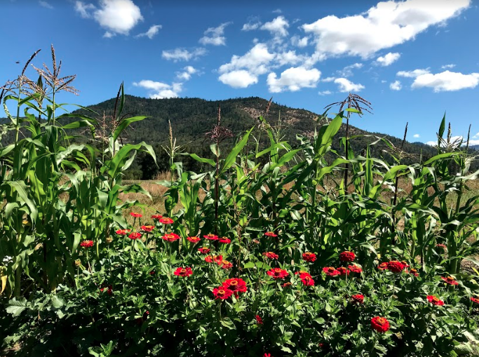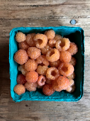 We grow a raspberries, strawberries, figs, apples, plums, and medicinal and culinary herbs.